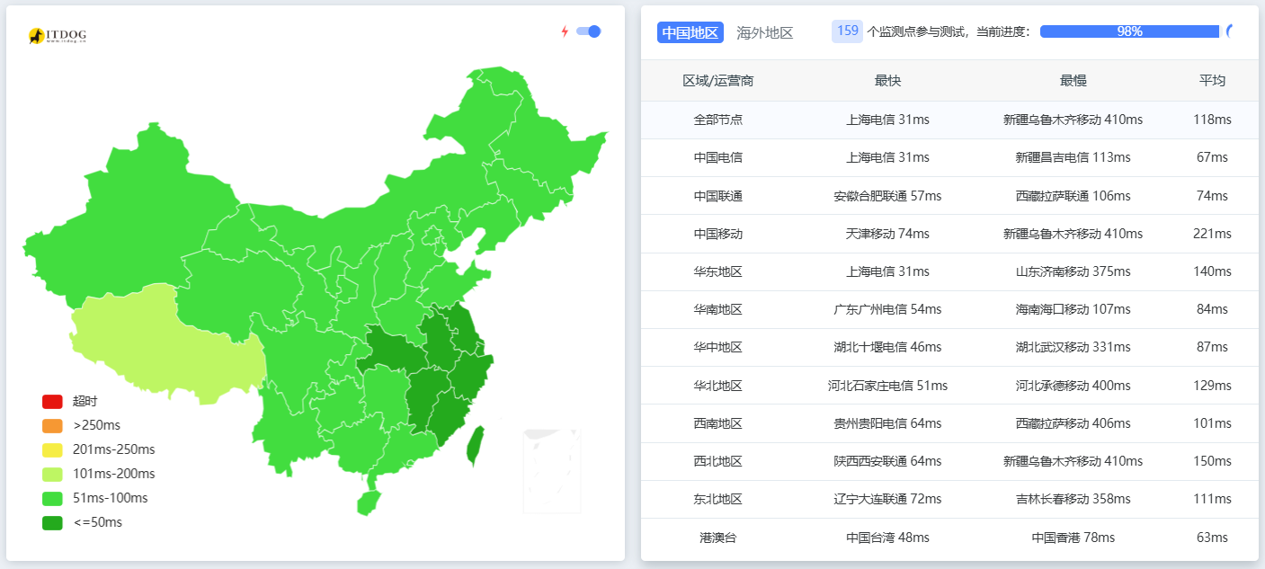 ▲ 国内三网全绿响应